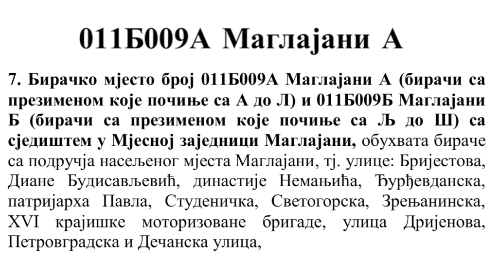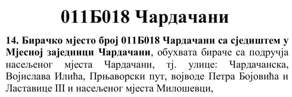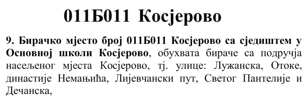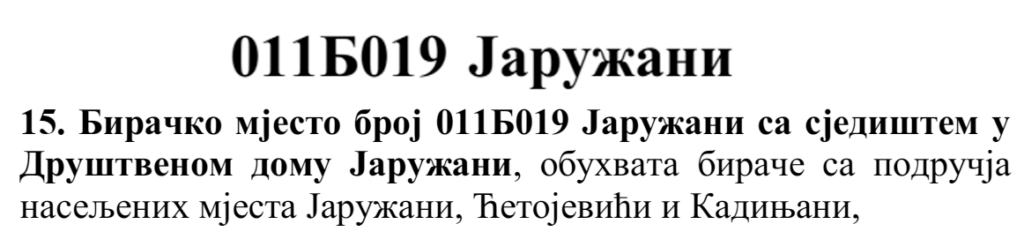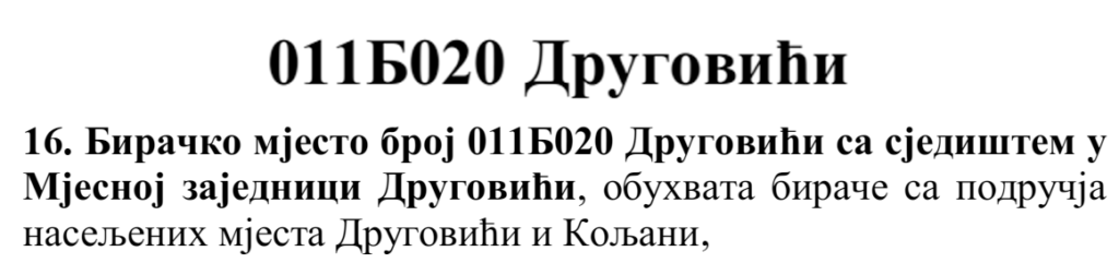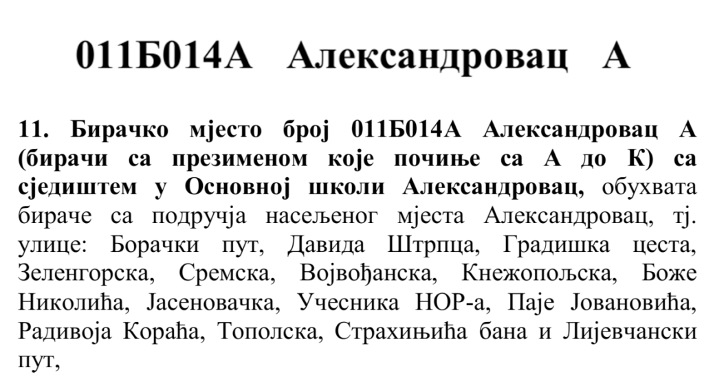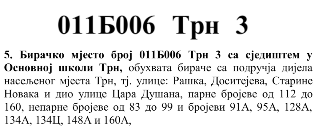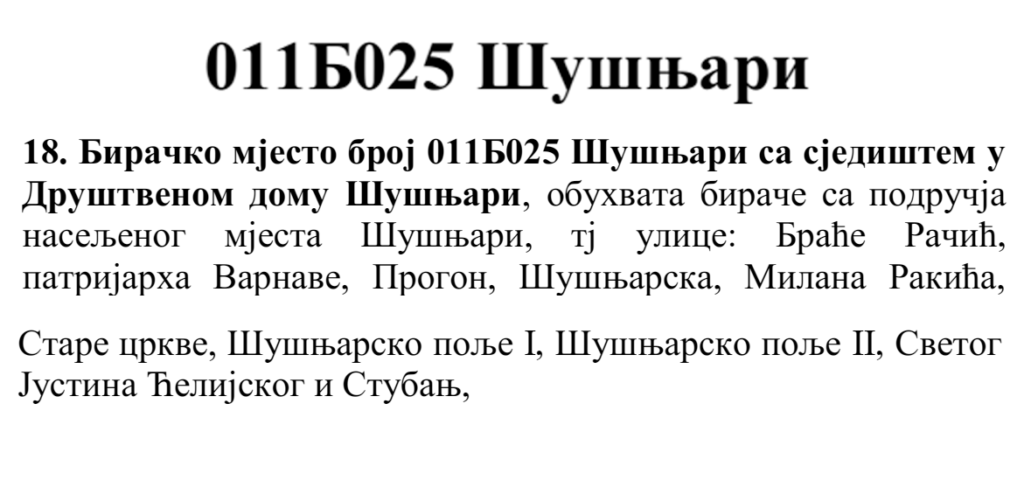 У овом документу још стоји да бирач који је стицањем пунољетства први пут уписан у Централни бирачки списак од дана закључења Централног бирачког списка до дана избора, а који бирачком одбору преда потврду издату од Центра за бирачки списак којом потврђује да се његово име не налази уписано ни на једном изводу из Централног бирачког списка и бирач који се налази на списку који је доставила Централна изборна комисија БиХ о држављанима БиХ који су уписани у извод из Централног бирачког списка за гласање изван земље имају право да гласају непотврђеним – ковертираним гласачким листићима на бирачком мјесту број 011Б040 Лакташи 8 са сједиштем у Основној школи Лакташи.