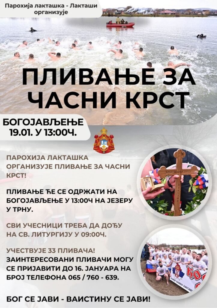 Parohija laktaška organizuje tradicionalno plivanje za Časni krst, koje će biti održano na Bogojavljenje, 19. januara, u 13.00 časova, na jezeru u Trnu.
